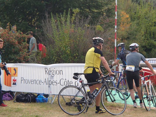 After a rather slow transition of over 10 minutes, this was followed by a very hilly bike ride up to Aiguines village, a climb up to 880 metres, pretty slow but no stopping. Then we really fast downhill portion reaching 50kph. Need to do a little more training on climbing hills on the road bike. The one session I did earlier towards Bargemon was not enough. However please with the time considering.