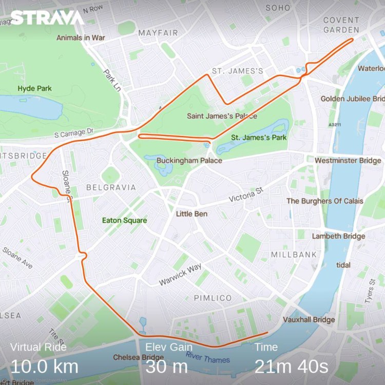 Short training ride on Zwift London route using the Saris H3 turbo trainer. Ride limited by time