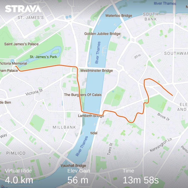 Quick 4km virtual bike ride around the Zwift London UK route.