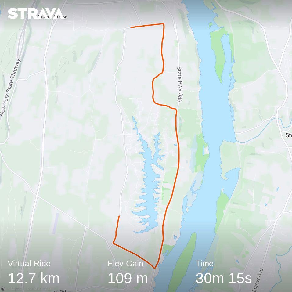 30min 12.7Km virtual ride on the ROUVY the New York πΊπΈ Brinkerhoff race course route. Need to finish this later in August. Fairly undulating