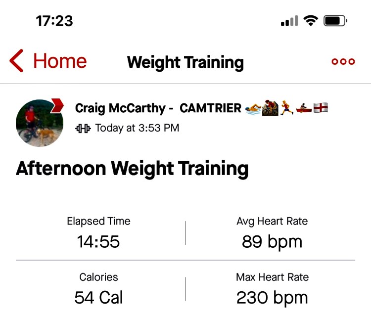 Post Christmas Weight session 5×5 Dead Lift, 5×5 Dumbell row, 20 Triceps extension, 20 overhead press