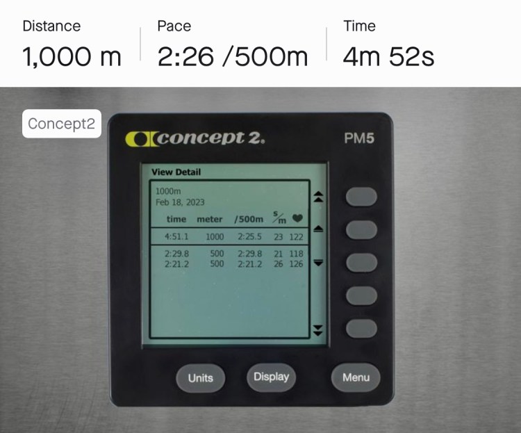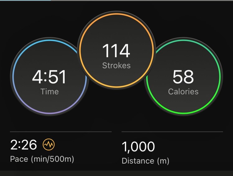 Quick 1000m warmup row before a Zwift virtual ride on WattBike.