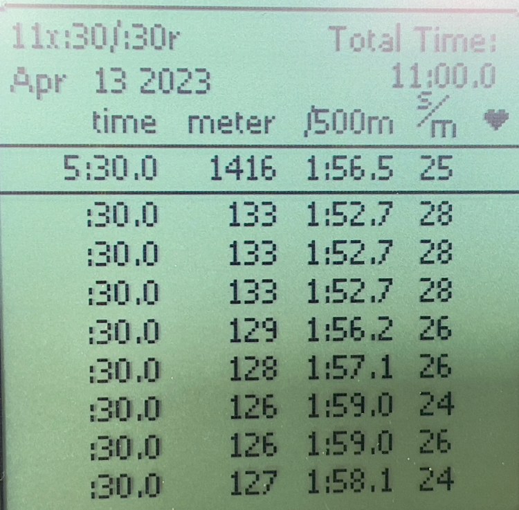 With the weather wind π¨ π§οΈ being awful decided on playing on the Concept2 Ergrow with a few interval sets starting with 8 x 30 seconds intervals and one called the magnificent 7 starting with 700m with 70sec rest then 600m with 60 sec rest, the 500m with 50sec rest, then 400m with 40sec rest, then 300m with 30sec rest, then 200m with 20 sec rest then 100m to finish. Fun π€© one to do. Total training done was 4916 which is great to top up my fitness for the Scillies and bringing down times on the PM5. Want to get well below well 2 minutes/500m on the PM5 by improving my technique on the Concept2. I followed this with around 20 minutes strength training with weights.