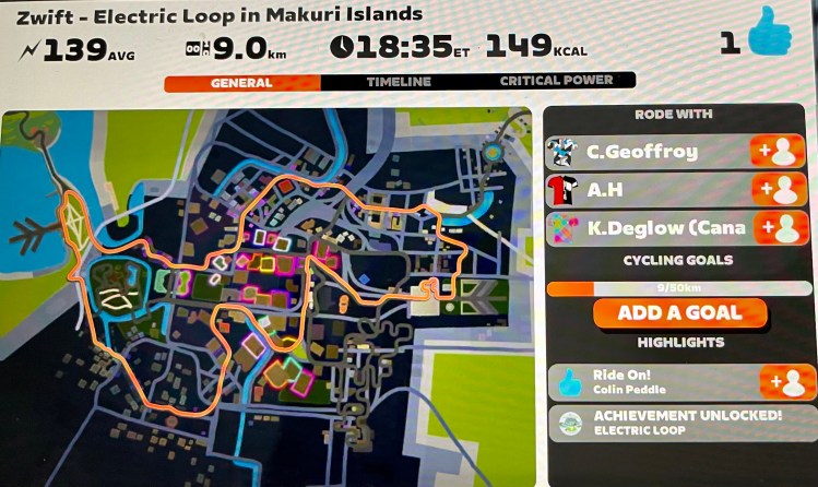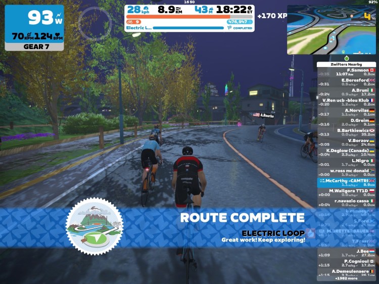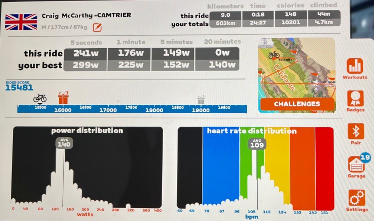 Quick training Virtual bike ride on WattBike on Zwift. Change from rowing.