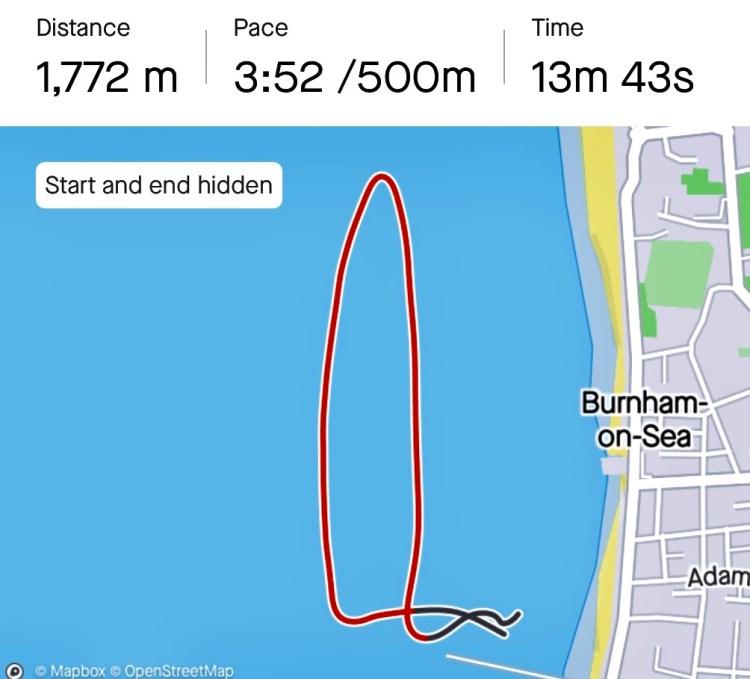 In the next race, the women’s A we came 3. This was followed by the mixed supervets where we came 5. We did not have a team for the novices or juniors. In the last race Steve, Tina and myself competed and we won this one and is summarised below and was shortened as the tide was coming in fast.