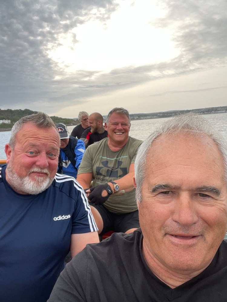 Evening row from Sandy Cove in Newlyn. Lots of race training. Cox : Julie, 6 Steve, 5 Me, 4 Jonny, 3 Grant 2 Trevor 1 Mikey with Jenny who was a rower from Henley on holiday and wanted to experience gig rowing 🚣♀️. She swoped with Trevor half way. Cool evening compared to previous nights and great for racing.