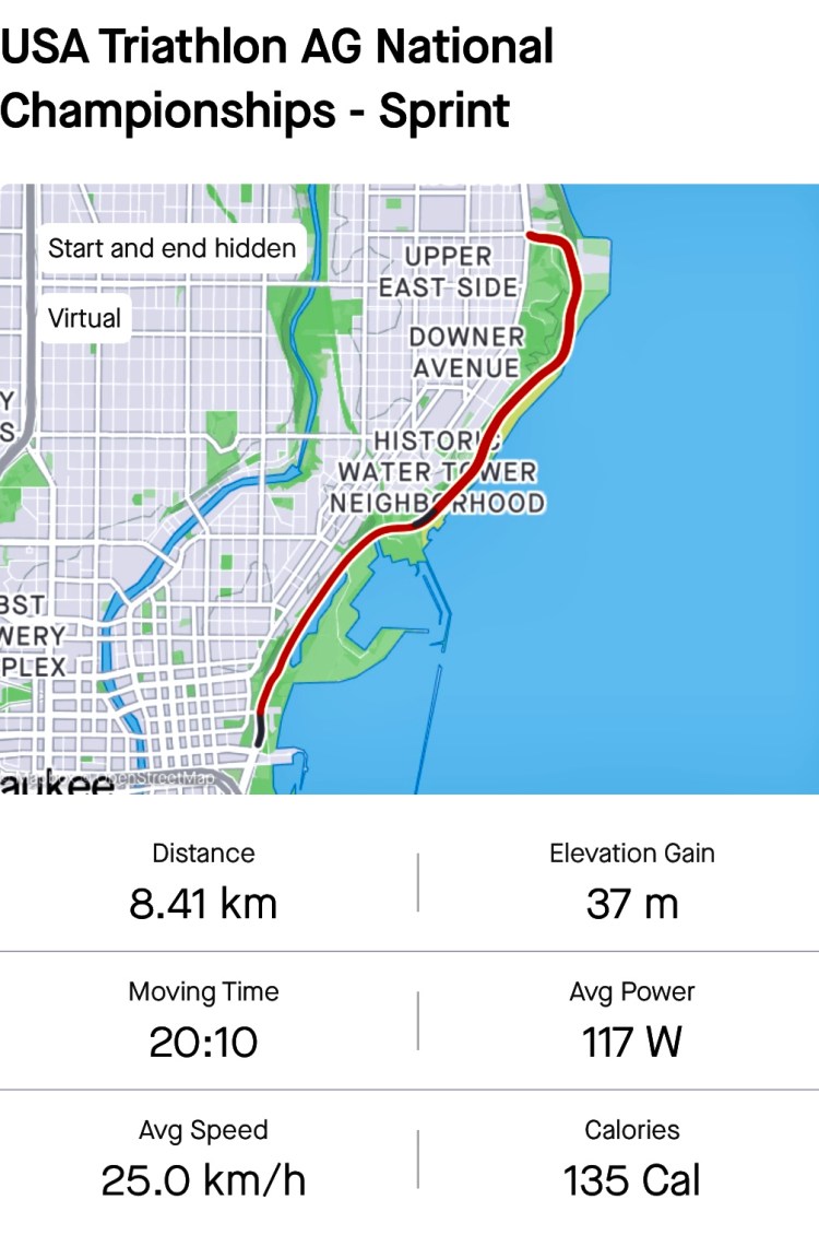 Quick virtual ride on WattBike on a ROUVY USA Triathlon sprint Championship course. Had issues with set up and gears so could not complete the course due to time constraints. Nice course for sprinting but gear changes a bit erratic. This was followed by strength training for arms and core with weights. Did 50 crunches and a short plank for the core.