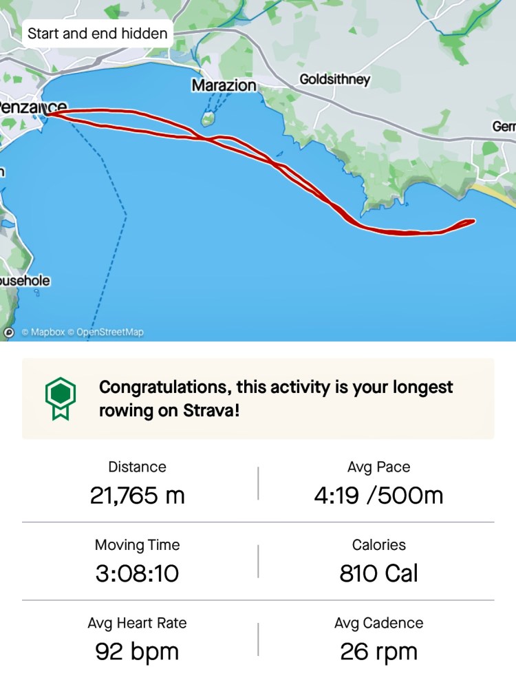Summary of the long row above in difficult conditions. We followed this by going to the dock in Penzance for a few celebratory drinks and crew team building as the whole team did a great job in the challenging seas Also lots of laughs of course 🏴☠️🚣🏿