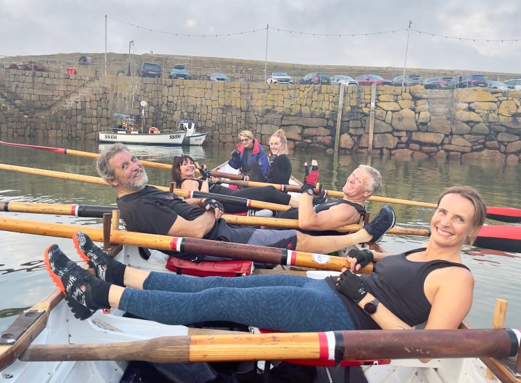 Nearly 10km Long Row with most of GRR crew to Mousehole Harbour and back from Penzance Harbour. Cloudy evening but reasonable waves. Cox: Wendy, 6: Jem, 5:Julie 4: Trevor 3: Steve 2: Sarah 1: Me. Good speed to Mousehole and back.