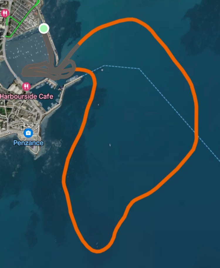 Quick training row for GRR around the Penzance harbour. Cox:Wendy, 6: Jemima, 5: Julie, 4: Tina, 3; Trevor, 2: Alison, 1: Me. Good training session in very choppy snd messy seas and heavy rain, Not a great evening to row but did a good steady row with a number of starts and power strokes. Afterwards went to the Longboat for a few drinks with the crew. Busy in the pub as a Liverpool match was on where they drew with Chelsea. Lots of laughs with the crew in the back room with a few 🍻. Reached the 20Km second week rowing target on the Concept 2 Dogs Day Challenge following reaching the 10km target the previous week. Feeling cold and wet 🥶 But having fun 🤩