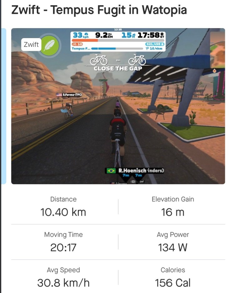 Quick zwift but WattBike stuck in 1 gear. So followed this with a WattBike training session. Bit of a change from gig rowing now the season is coming to an end.
