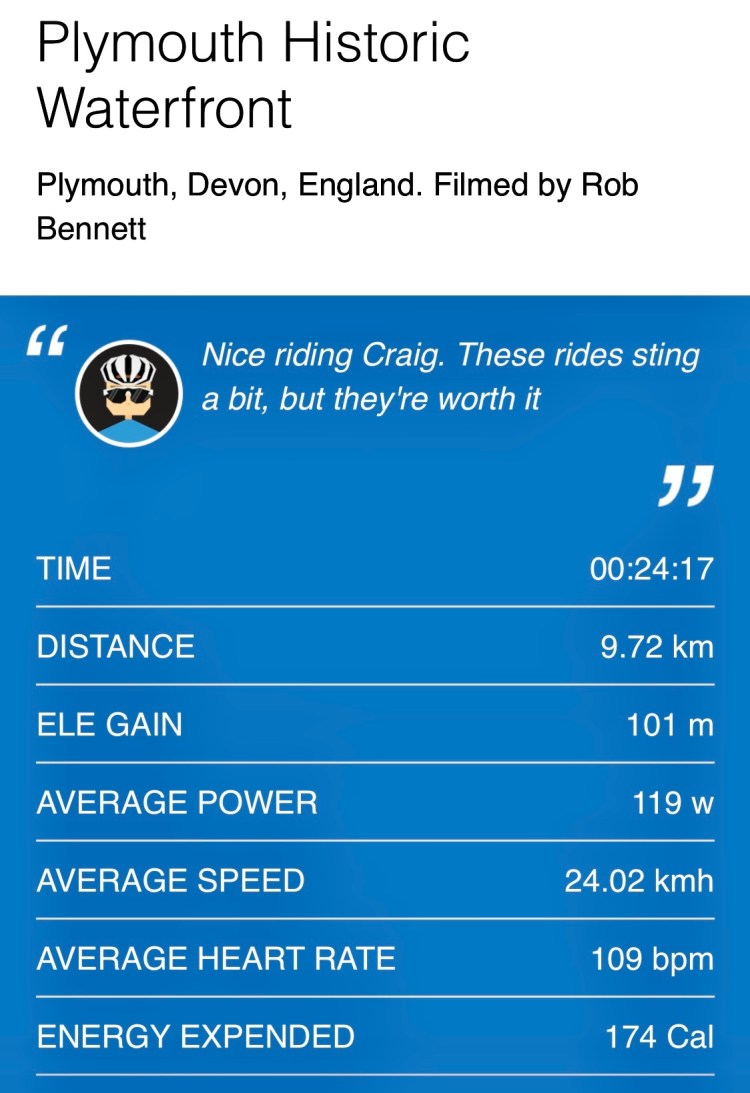 Followed this with a Fulgaz ride around Plymouth waterfront taking out a number of historic sights
