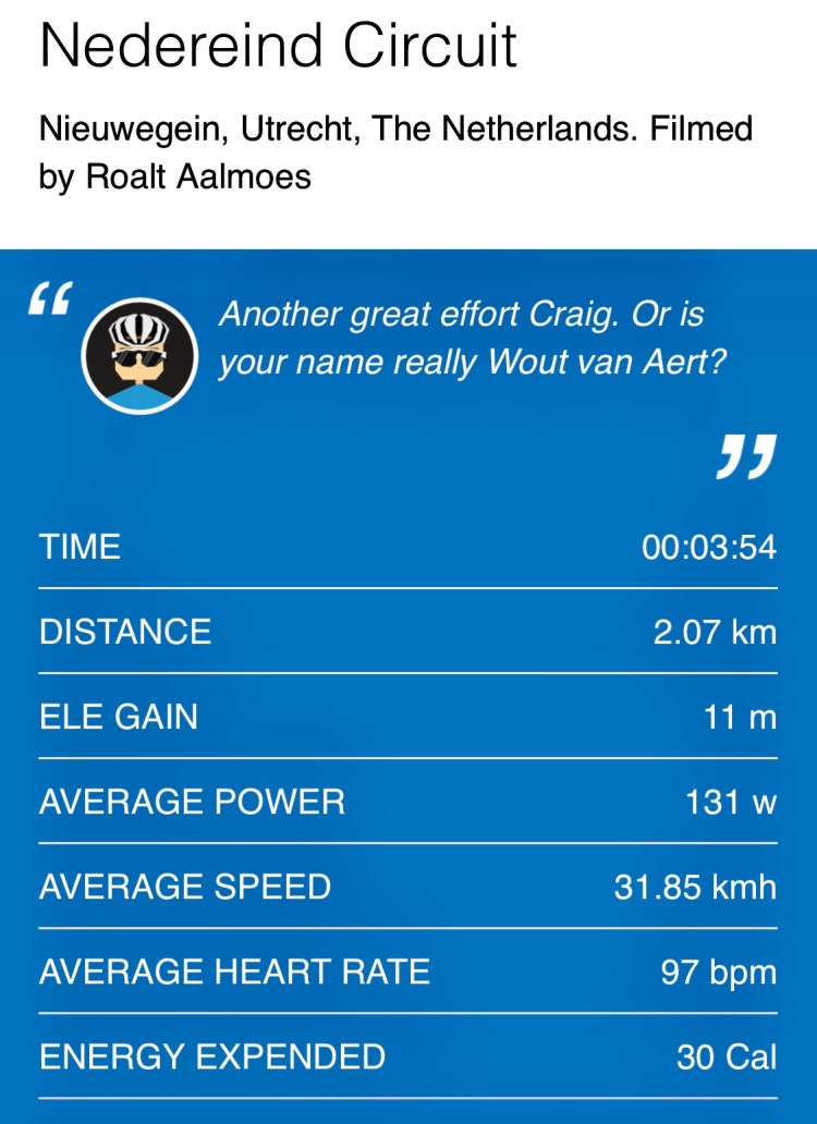 Nice warm up ride on the relatively flat Nedereind route in Netherlands near Utrecht.