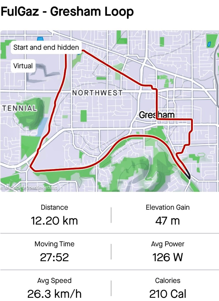 After a 45 min Pilates session did a 28min virtual ride on the Gresham loop in Oregon, USA πΊπΈ. Nice flat ride