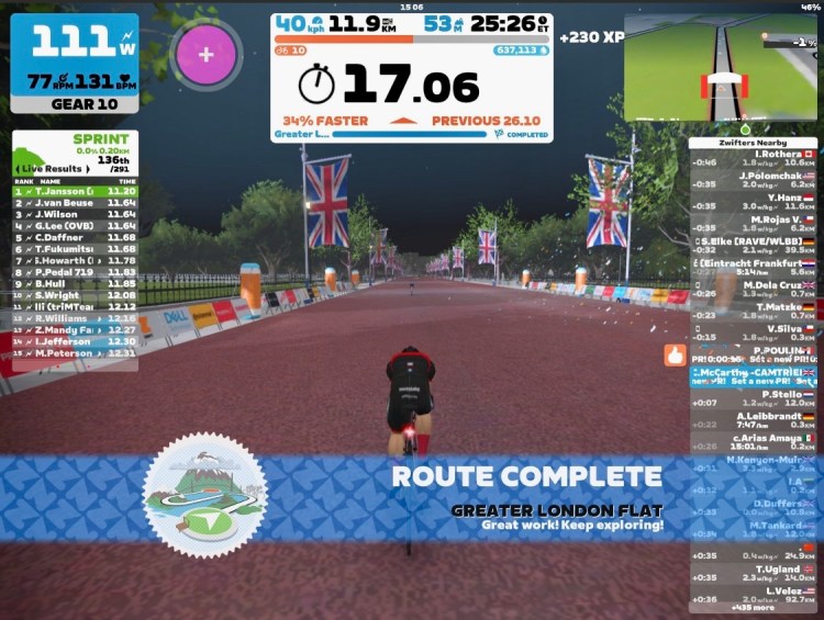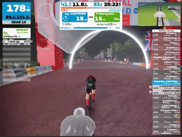 A quick training ride on the zwift London route which reminded me of some of the sights in my 9 London marathons as well as my recent gig row down the Thames in the London Great River Race with my pirate 🏴☠️ team mates from PNPGC. Some shots from the ride.