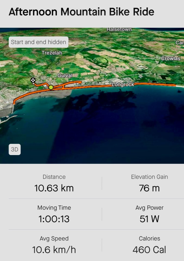 Quick hour MTB training ride to test out the bike for tomorrow’s with Trevor and Steve. Bike seems to be working well