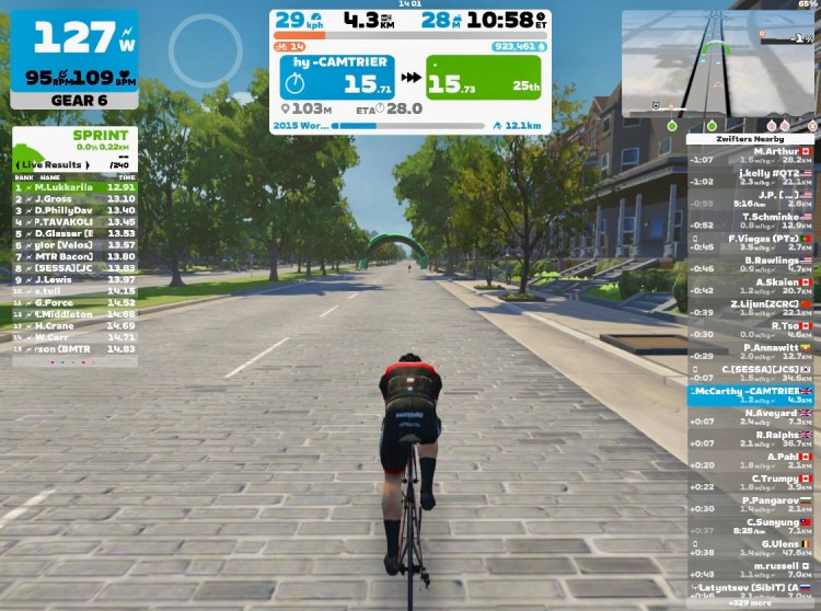Quick 10km WattBike ride on the Zwift Richmond route.