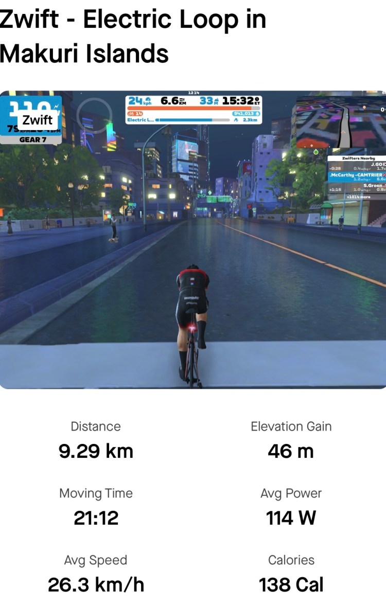 Virtual Zwift virtual training ride after completing all my cardiac investigations freeing me to training. Also a quick cool down RowErg row