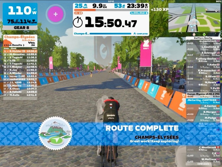 Quick warm up with RowErg to get back into it after a few weeks waiting for medical test results which were positive. Followed this with a WattBike virtual 10 km ride on the Zwift Paris course to increase fitness.