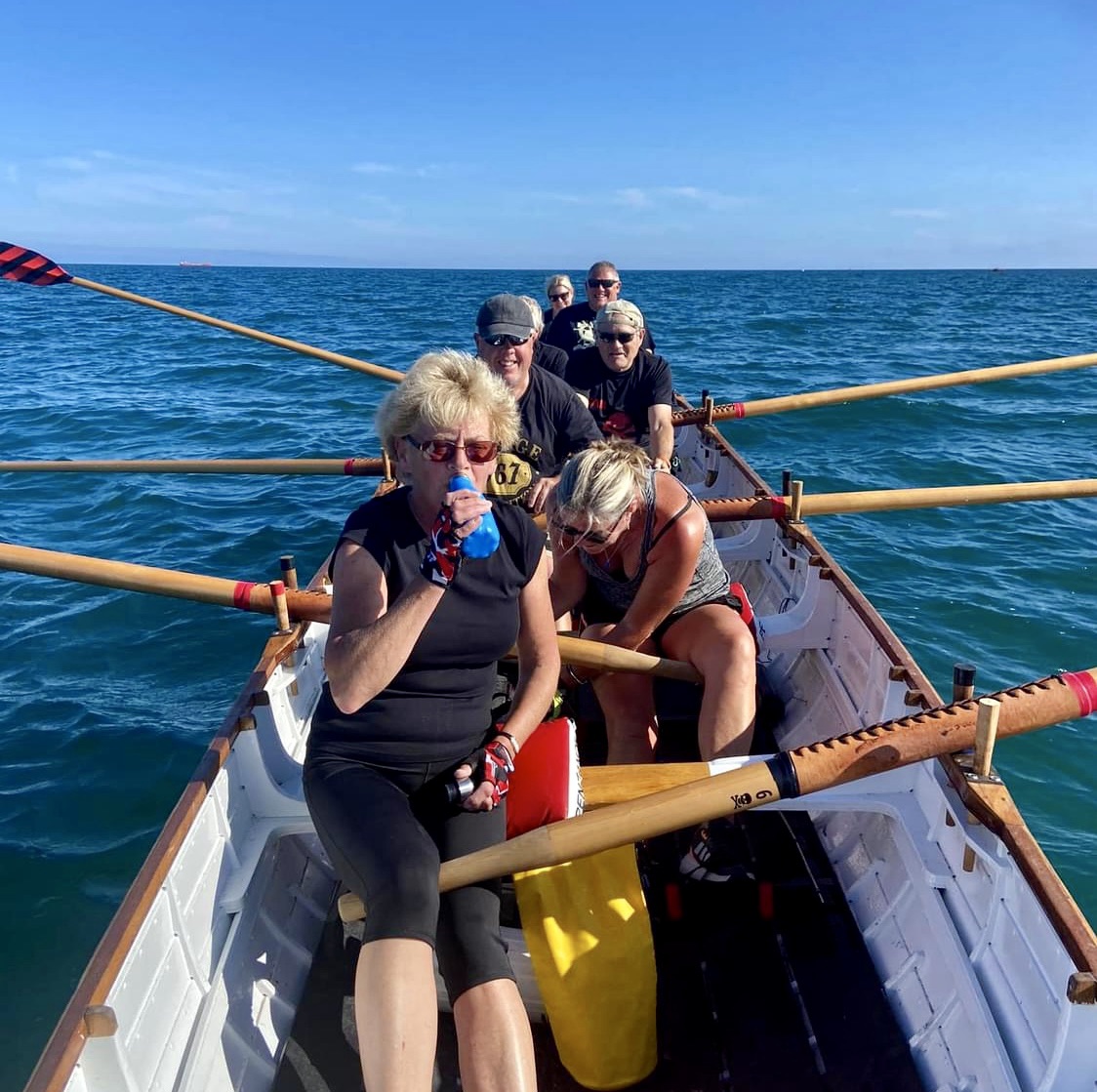 Nice leisurely row in sunny ☀️ conditions with a bit of a chop. Cox: Julie, 6: Michele, 5: Jo, 4: Ant, 3: Me, 2: Trev, 1: Grant withy Kerry as passenger. Lots of technique training, some starting training. Plenty of stops outlining methods to improve technique. Pictures of the crew and new ferry ⛴️ that will start ferrying passengers to the series