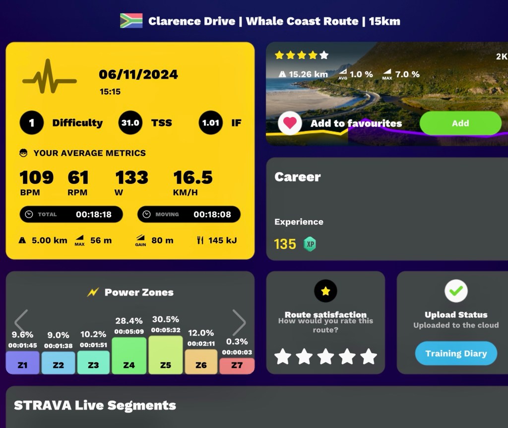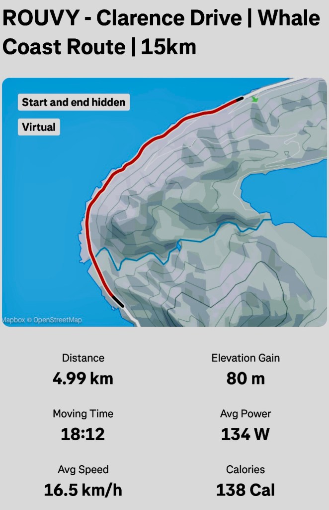 Quick training ride on above ROUVY route in South Africa after my month holiday eating and drinking!