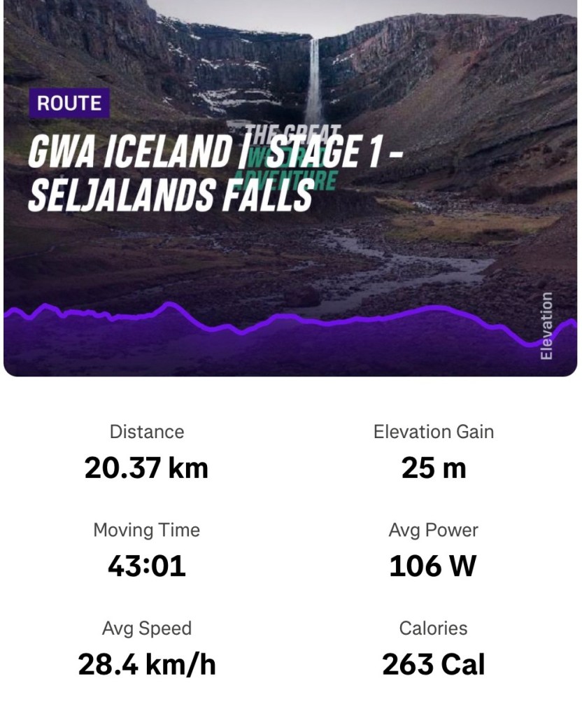Nice fast Wattbike ride in the Icelandic ๐ฎ๐ธ ROUVY route after my month holiday in Ireland ๐ฎ๐ช and France. Followed this with a few weights.