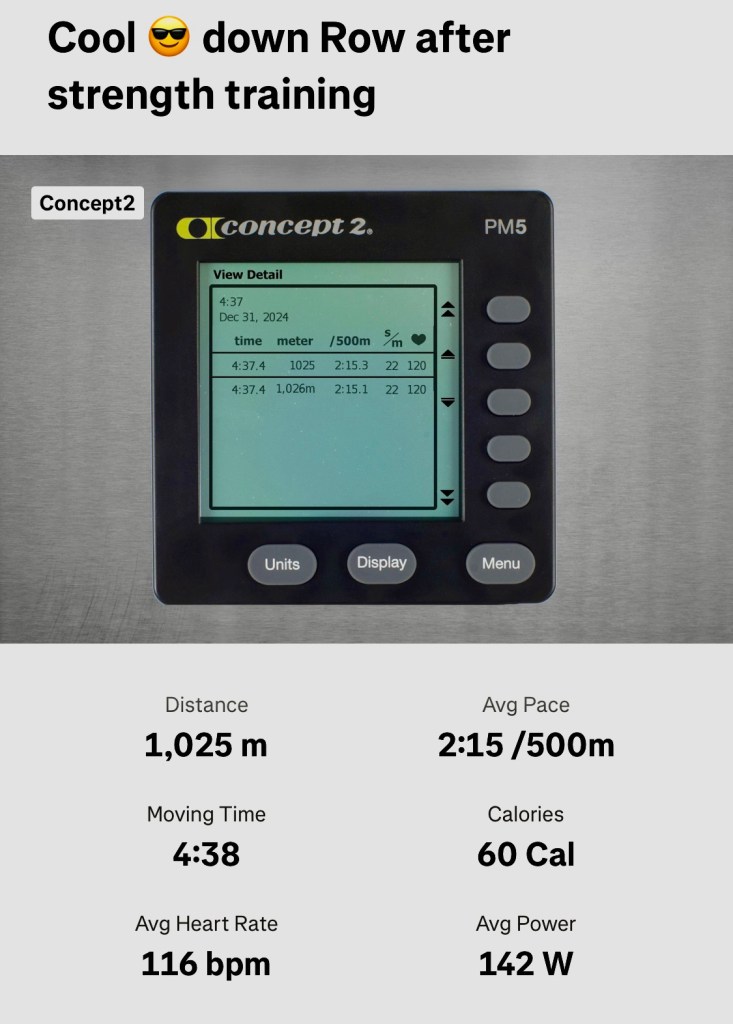 Followed by a 1km cool 😎 down ErgRow as follows: