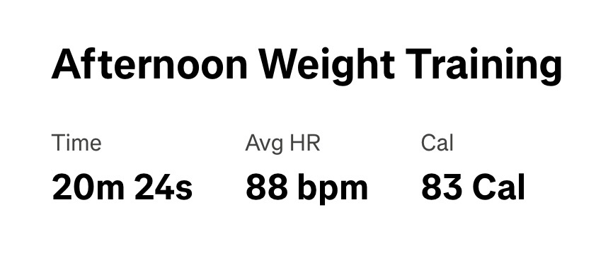 20 minutes of strength training with barbell and dumbell weights. 5 sets with 5 actions