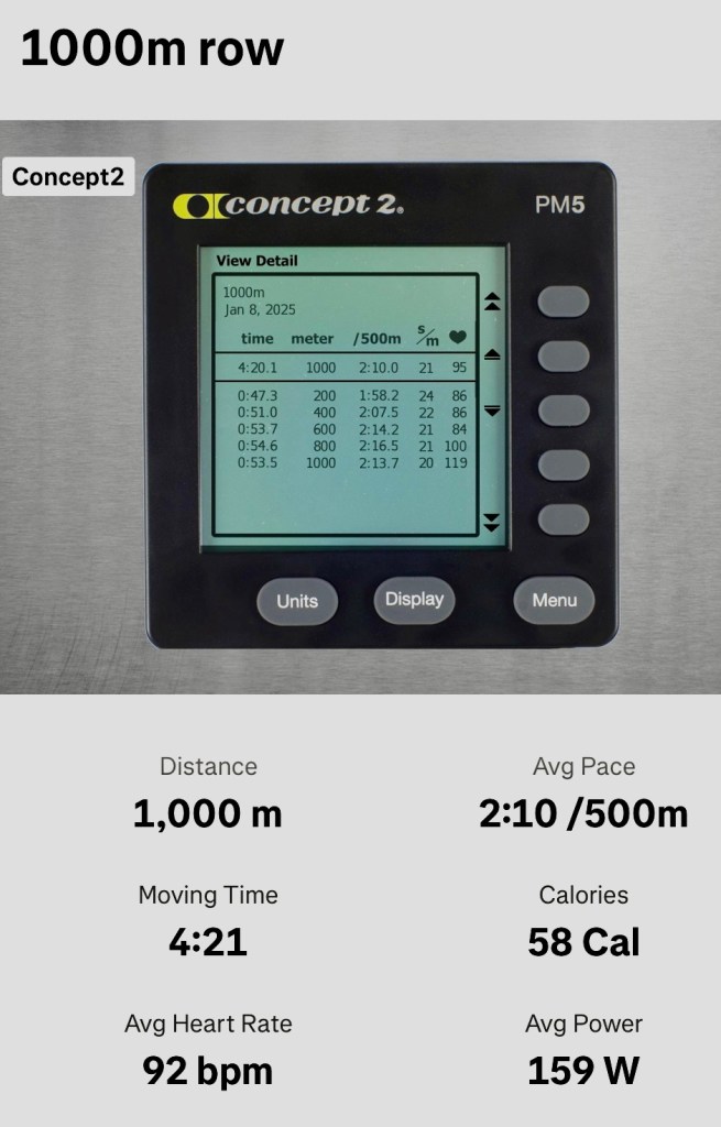 In addition some stretching & flexibility exercises. Followed this with a cool 😎 down row as follows: