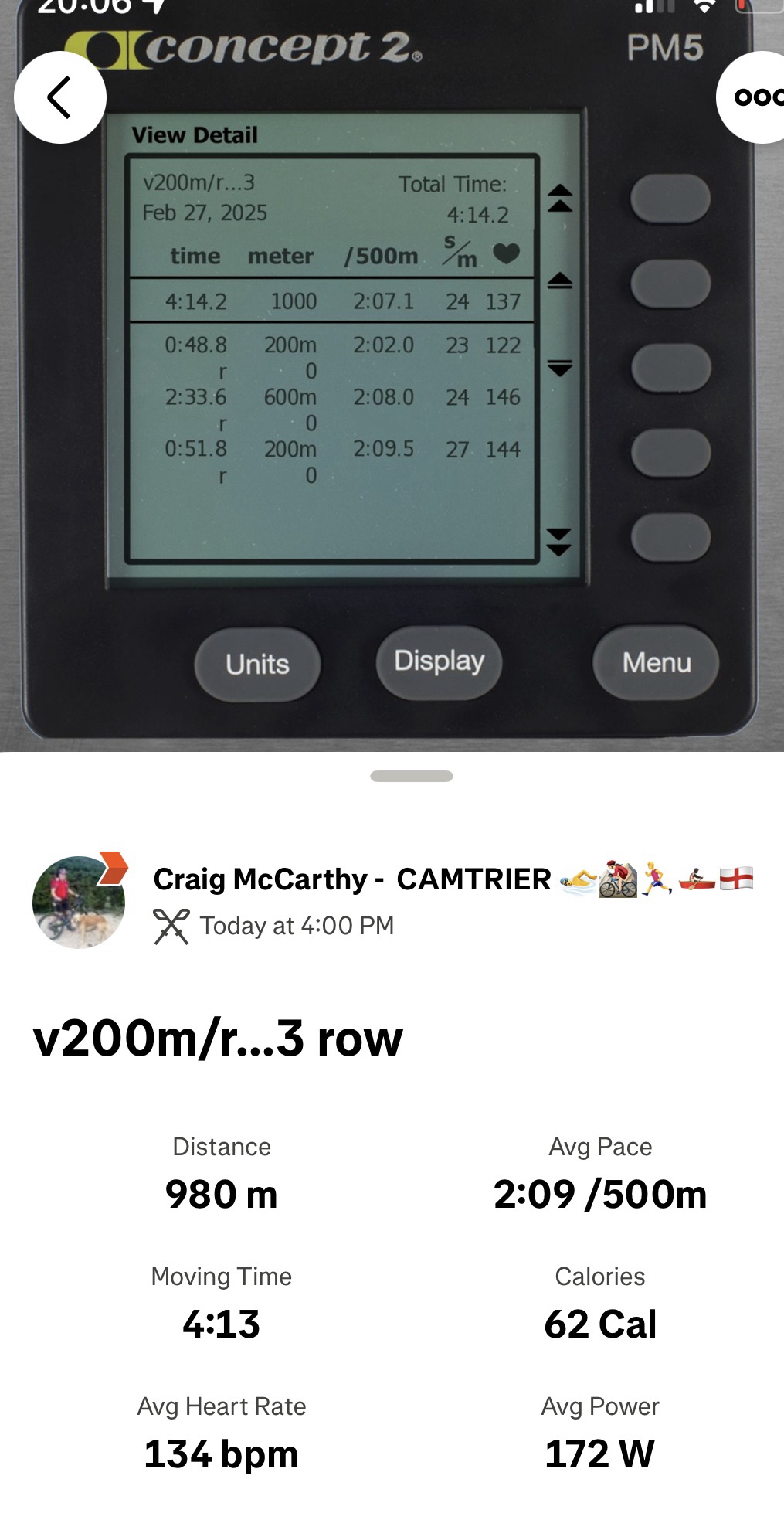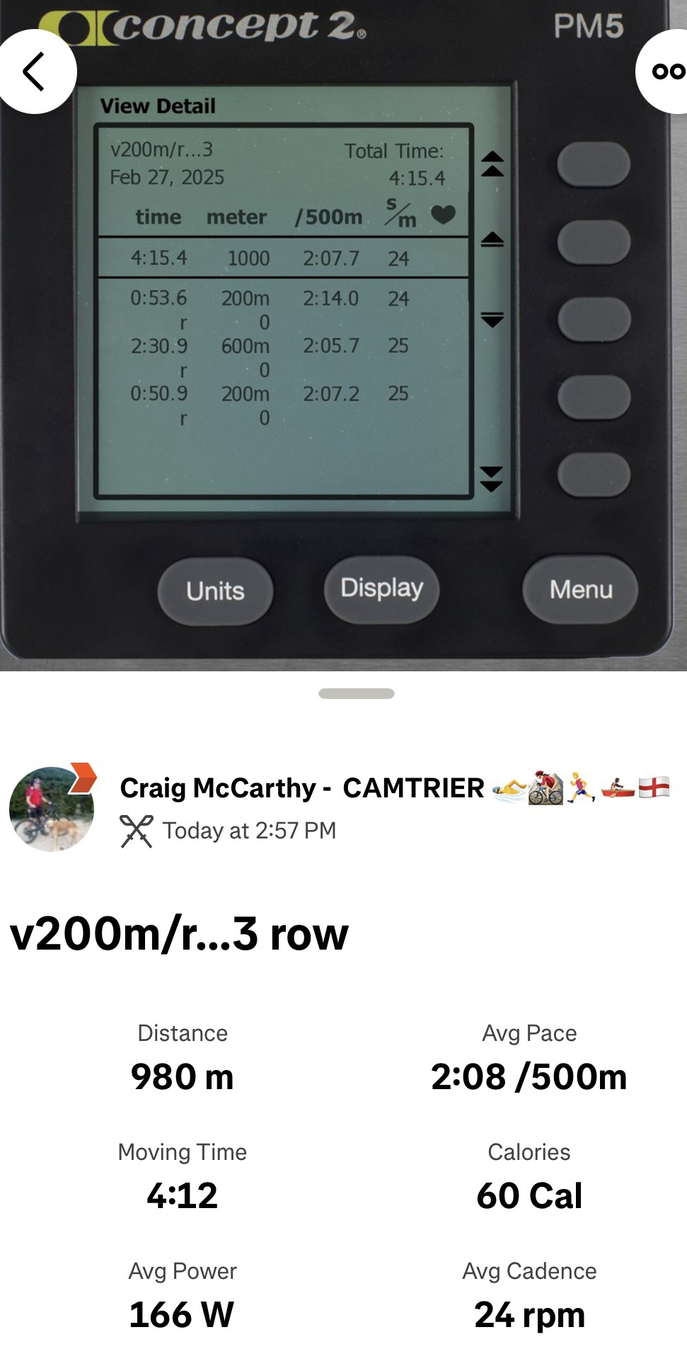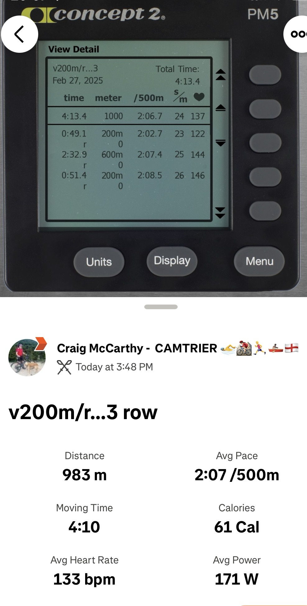 This session was challenging as going from low stroke rate and increasing this over the distance although hopefully increasing power actually didn’t make much difference as technique went out the window. Hope to nail technique and breathing with increased row rate to increase power. These sessions are good to improve technique with stroke rate as well as aerobic fitness.