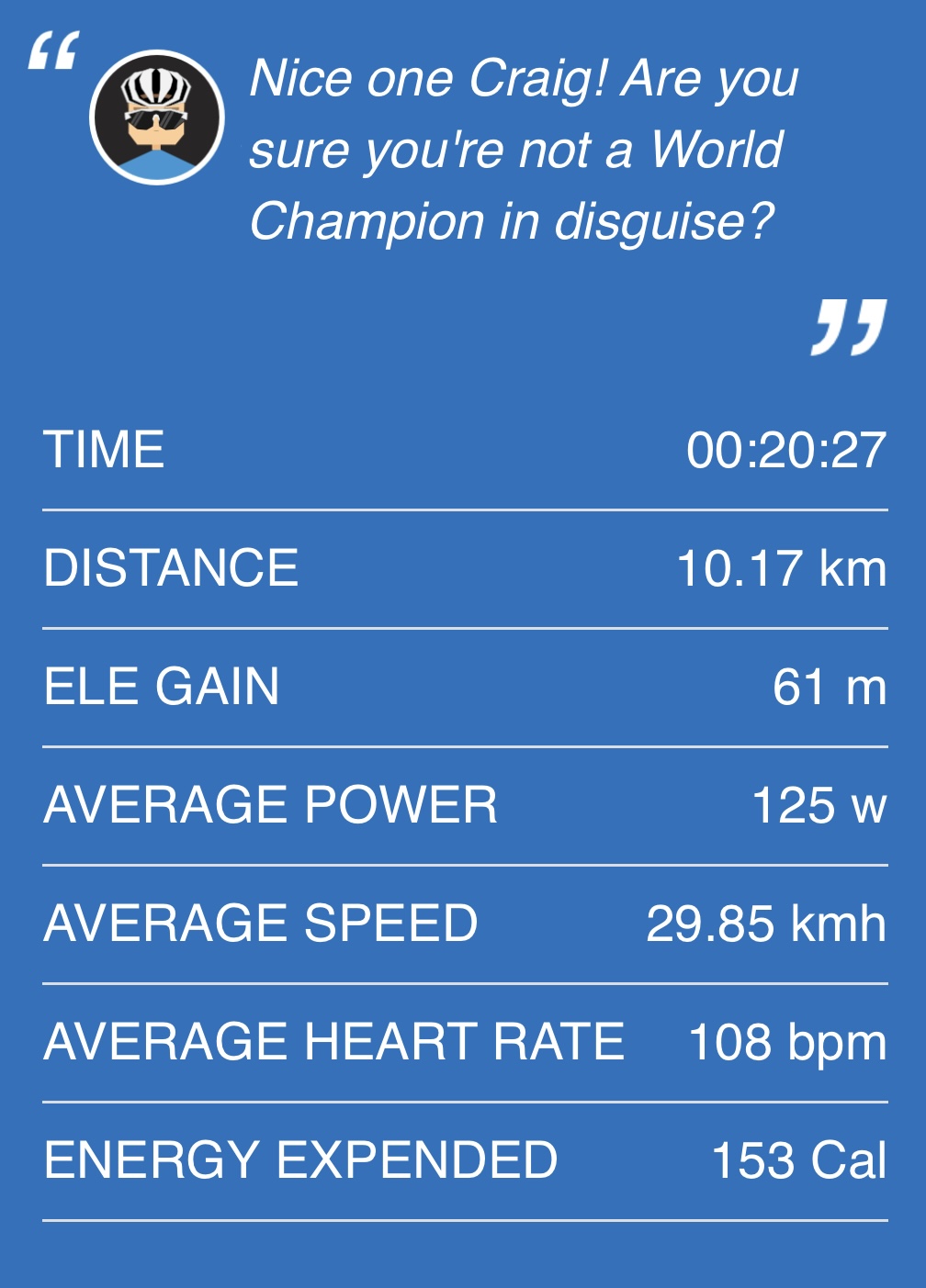 A 20 minute blast on the WattBike on the New Zealand 🇳🇿 Fulgaz Ironman course in Taupo. This was followed by strength training