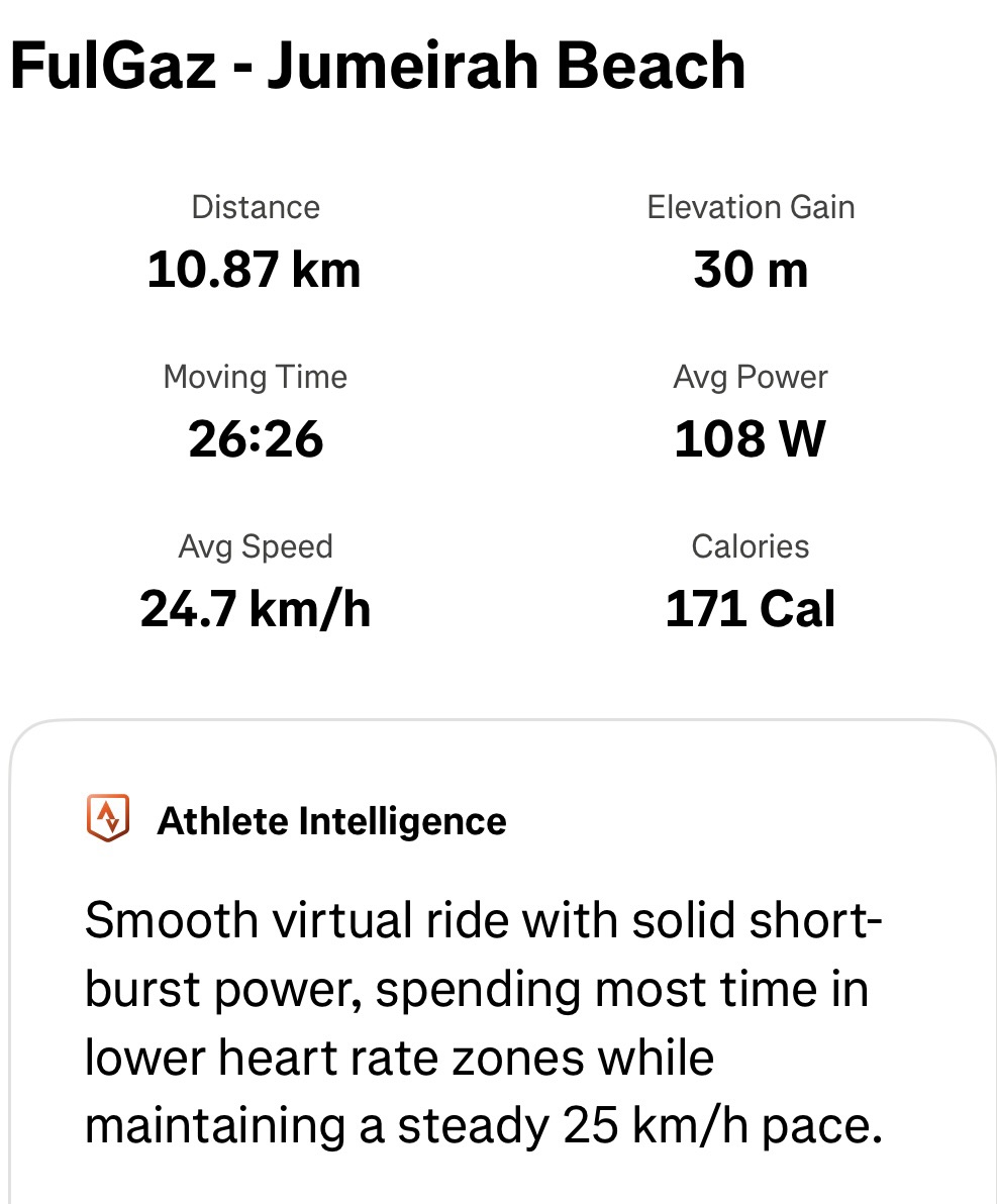 Nice warm π₯΅ up WattBike ride around the Fulgaz Jumeirah Beach course followed by a strength session as below
