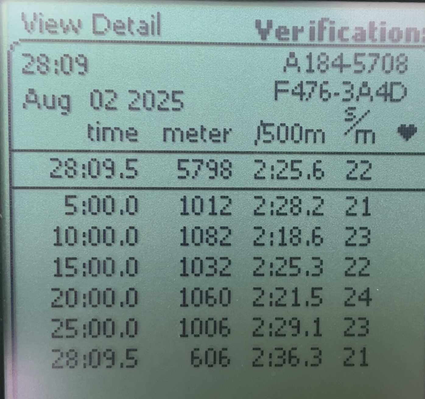 Nice 28 minute session following a RowAlong workout changing stroke rates for varied times. Followed this workout with strength workout.