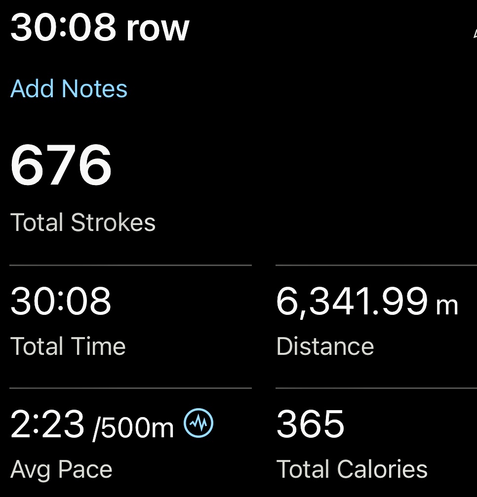 Nice 30 minute fitness row following John on RowAlong with different stroke rates including warm up and cool 😎 down. Followed this with the short strength training exercise.