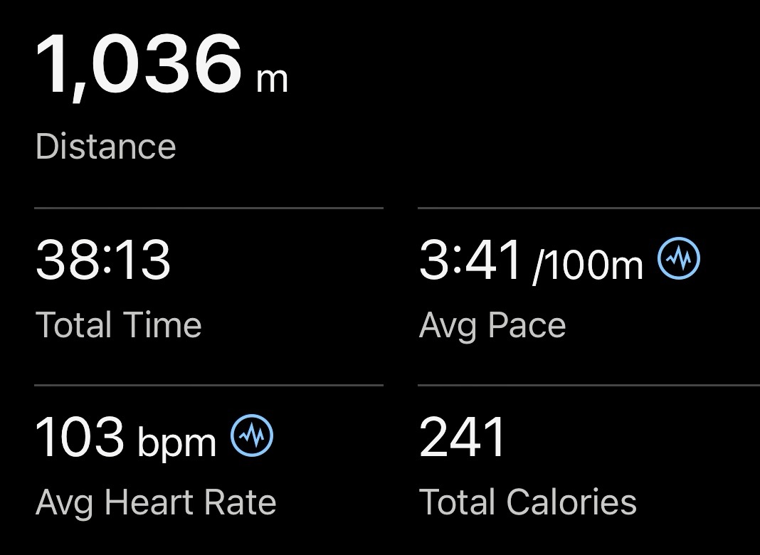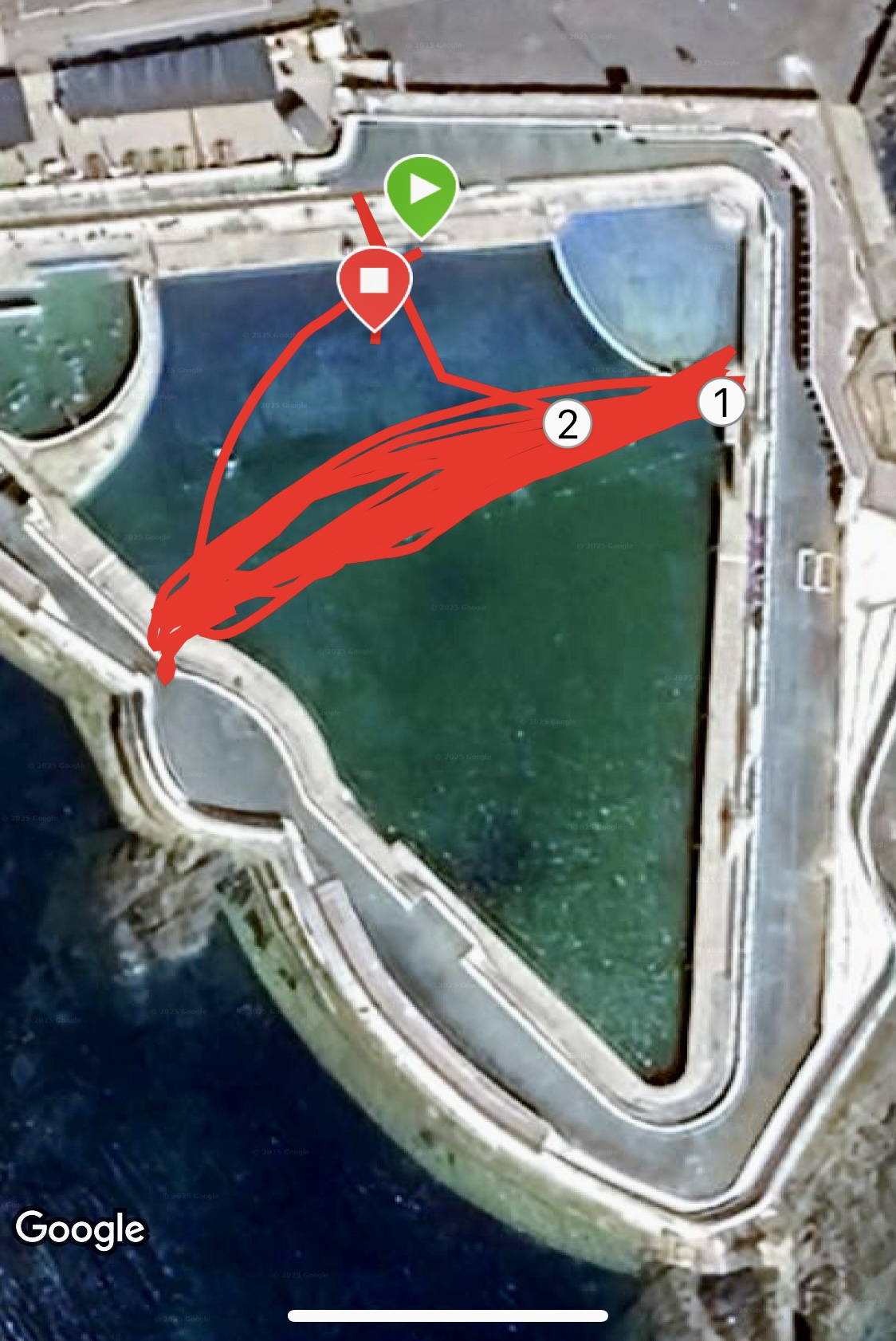 walked 4.5km to Jubilee pool and back. At the pool did just over 1km swim including some drills to improve technique and speed. Cloudy ☁️ and warmish.