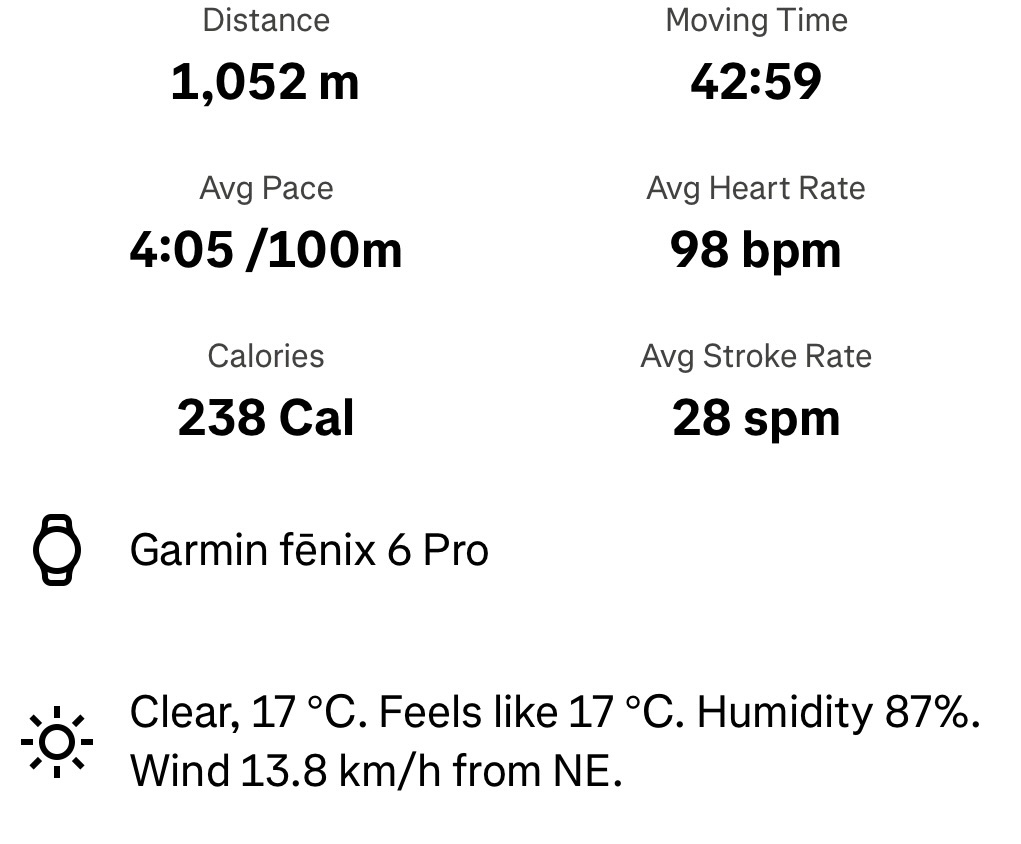 4km walk to Jubilee pool for a continuous 1km swim with a few drills included to improve technique but need to enhance these over the coming weeks.