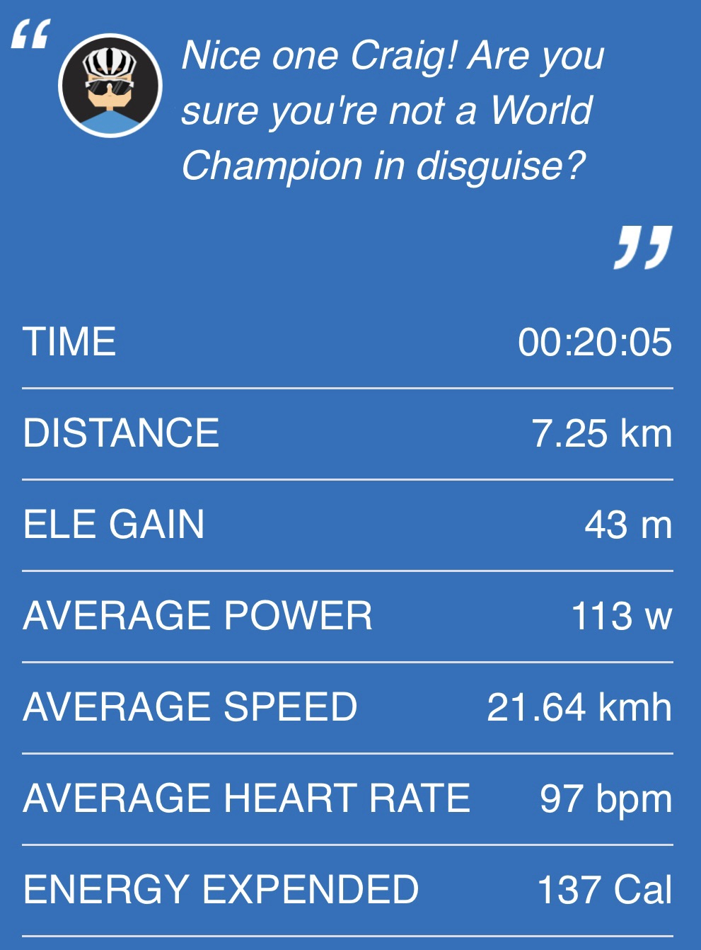Warm up ride on WattBike following the San Francisco Harbour which reminded me when I was there several years back on a conference. Followed this with a strength session as shown below: