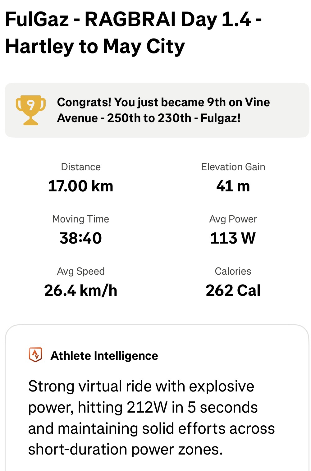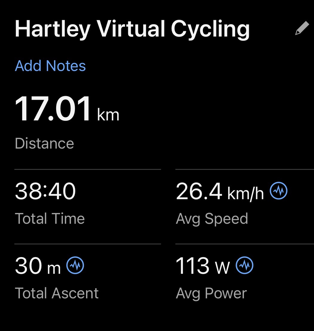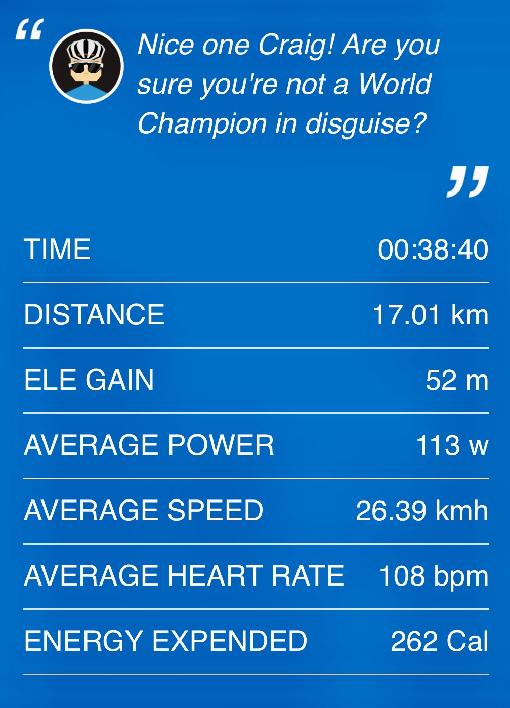 Nice 17km ride with other riders on a route in US. This was followed by a Strength session.