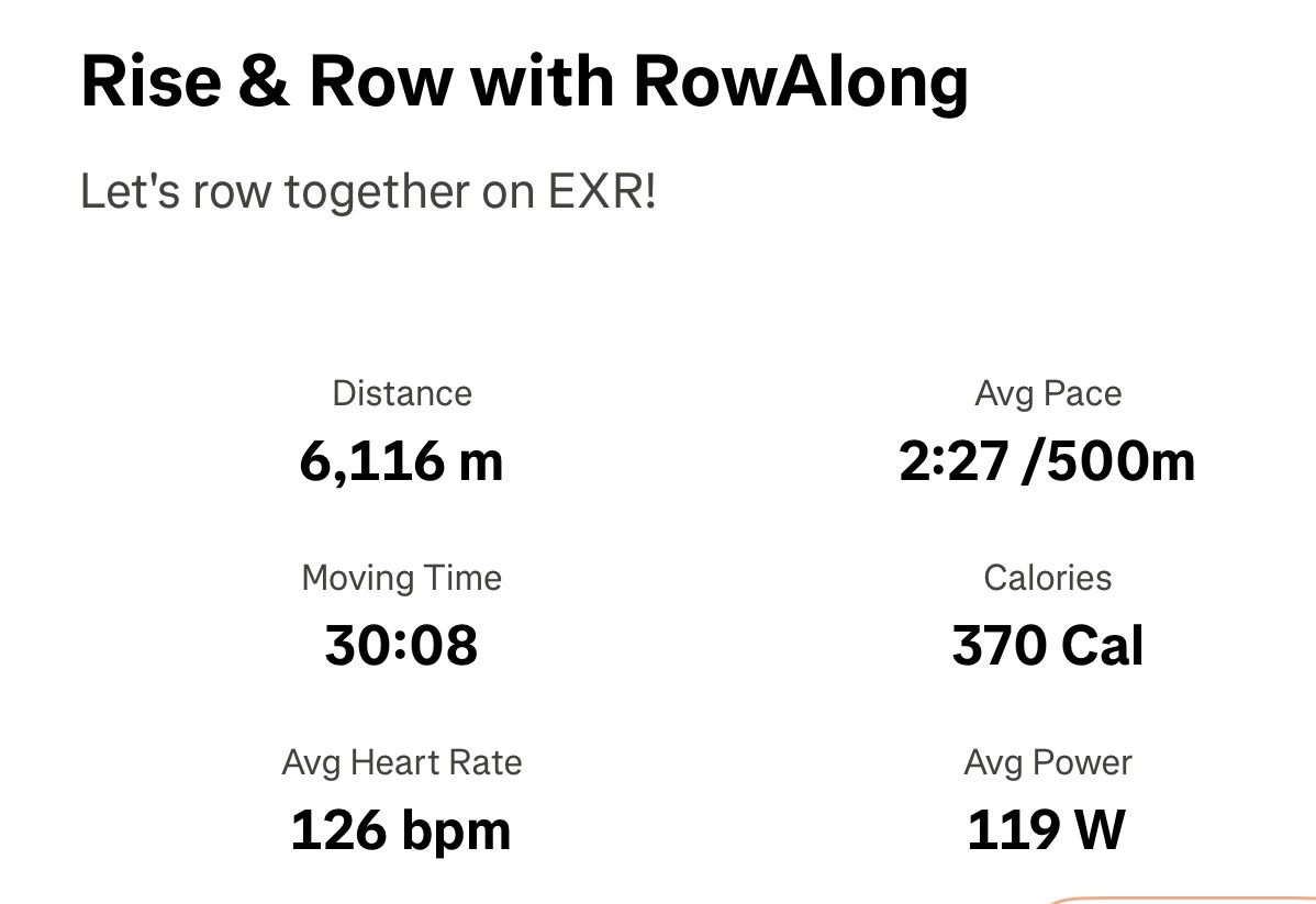 Nice virtual 6km, 30minute Sunday morning race row with RowAlong along the EXR Cambridge River route. Quite a good way to be motivated while rowing