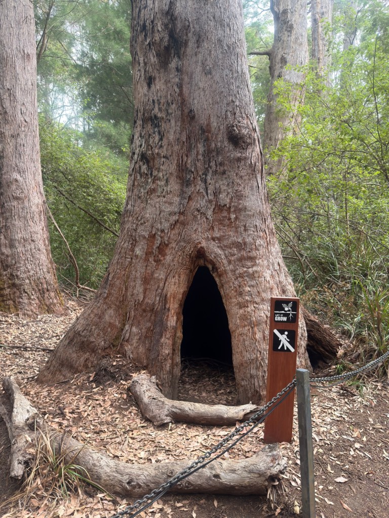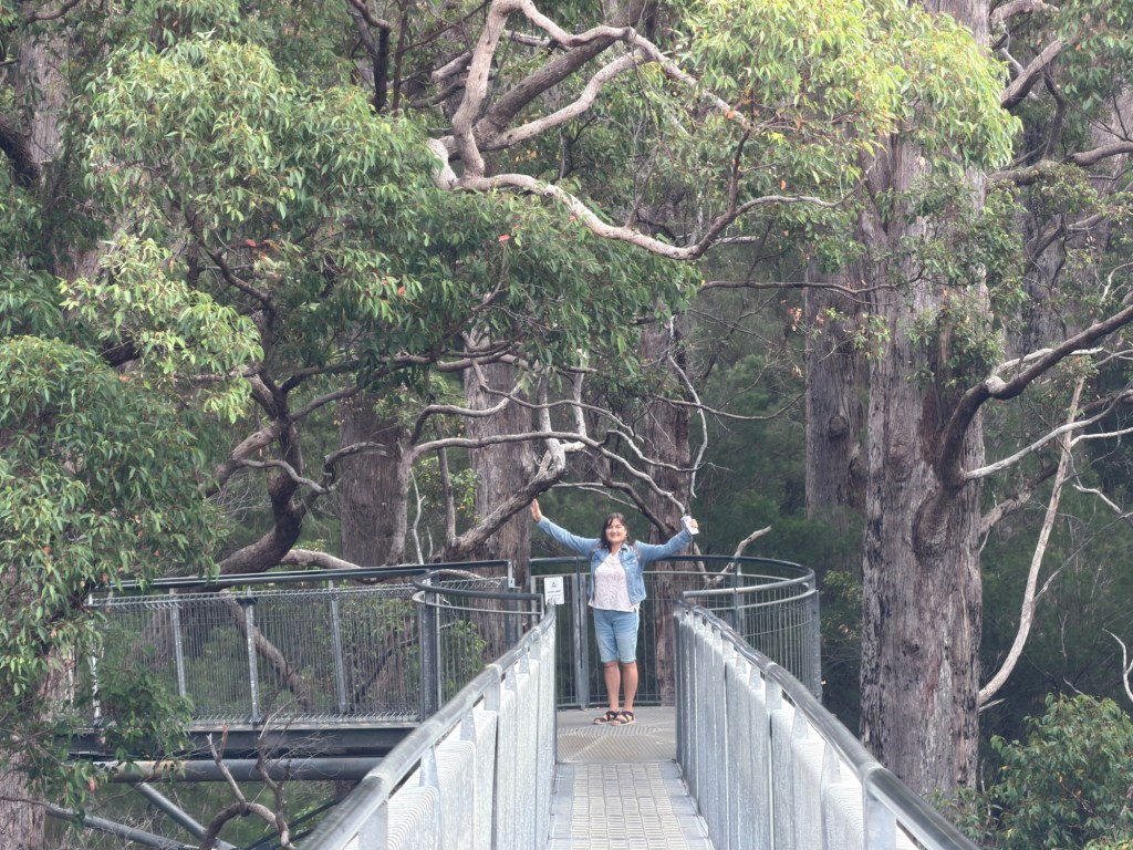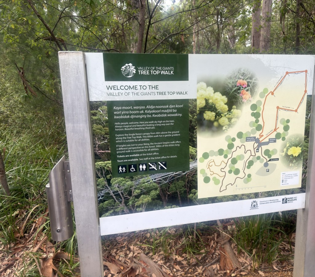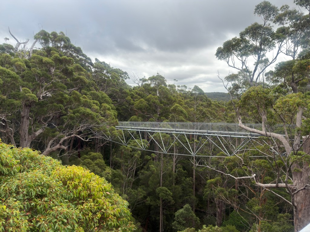 After breakfast checked out of chalet and made our way to Albany which is 345 Km away and stopped off at Pemberton and then Walpole to walk the Giant Tree Top Bridge walk. Quite something to walk above some of the giant trees. Afterwards walked on the forest trail on the ground