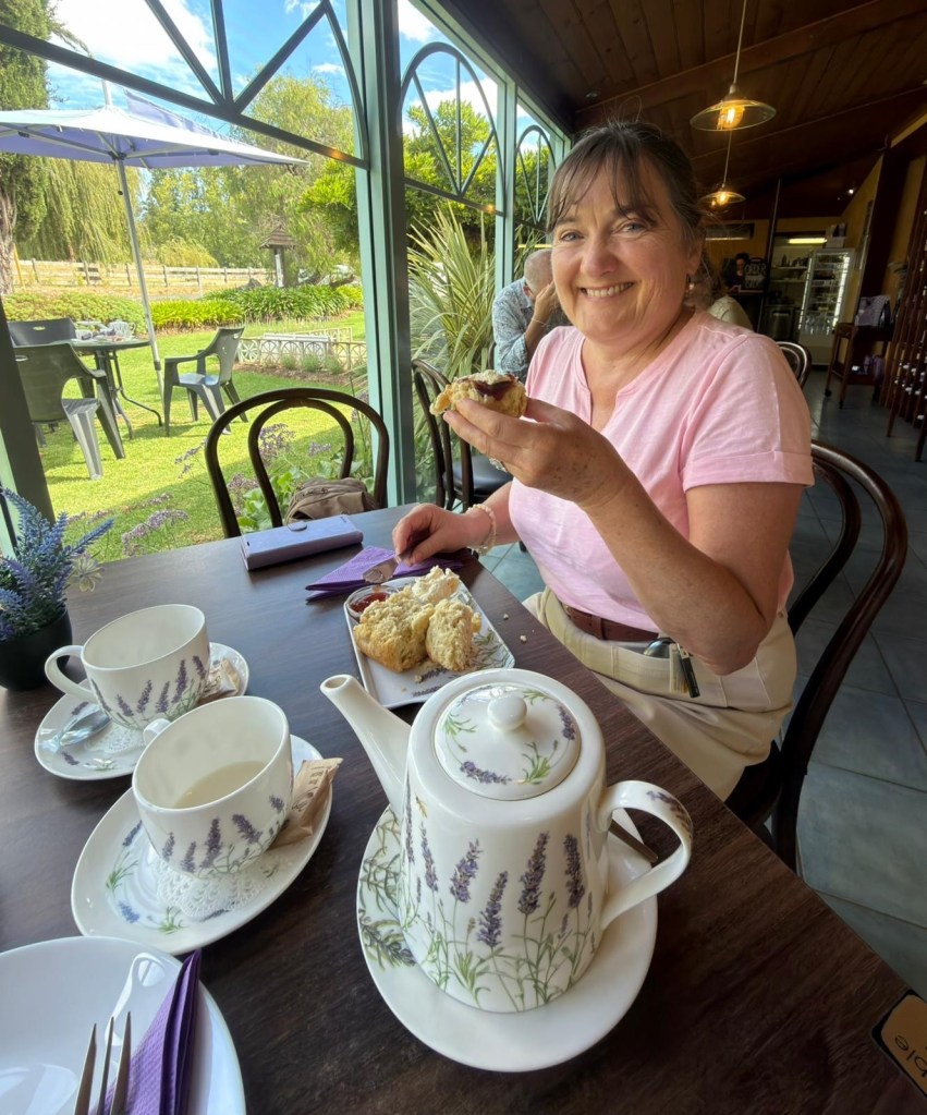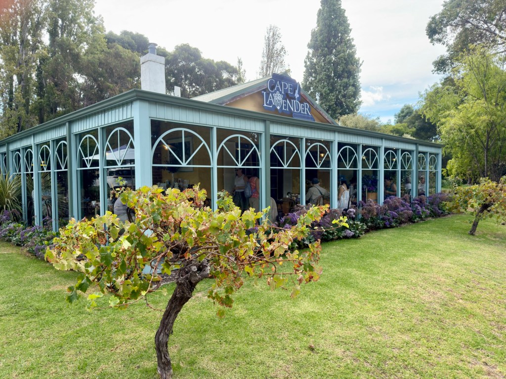 After the caves drove to Margaret River to RiverGlen chalets. Stopped off at cape lavendar cafe where everything was purple and contained lavenders Jacs favourite colour and plant. Had tea and cake