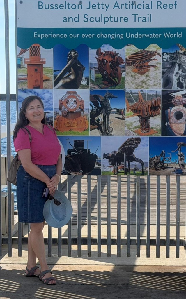 After breakfast went to do a tour of the Jetty and Aquarium, however it was all booked up due to a massive cruise ship arriving! Had a walk round Busselton. Do decided to go to Ngilgi caves near Dunsborough.