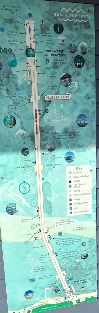 This was a rest day and had a walk to Margaret River town and had some lunch. Then went onto Busselton again to walk on the mile Jetty as the cruise had left.