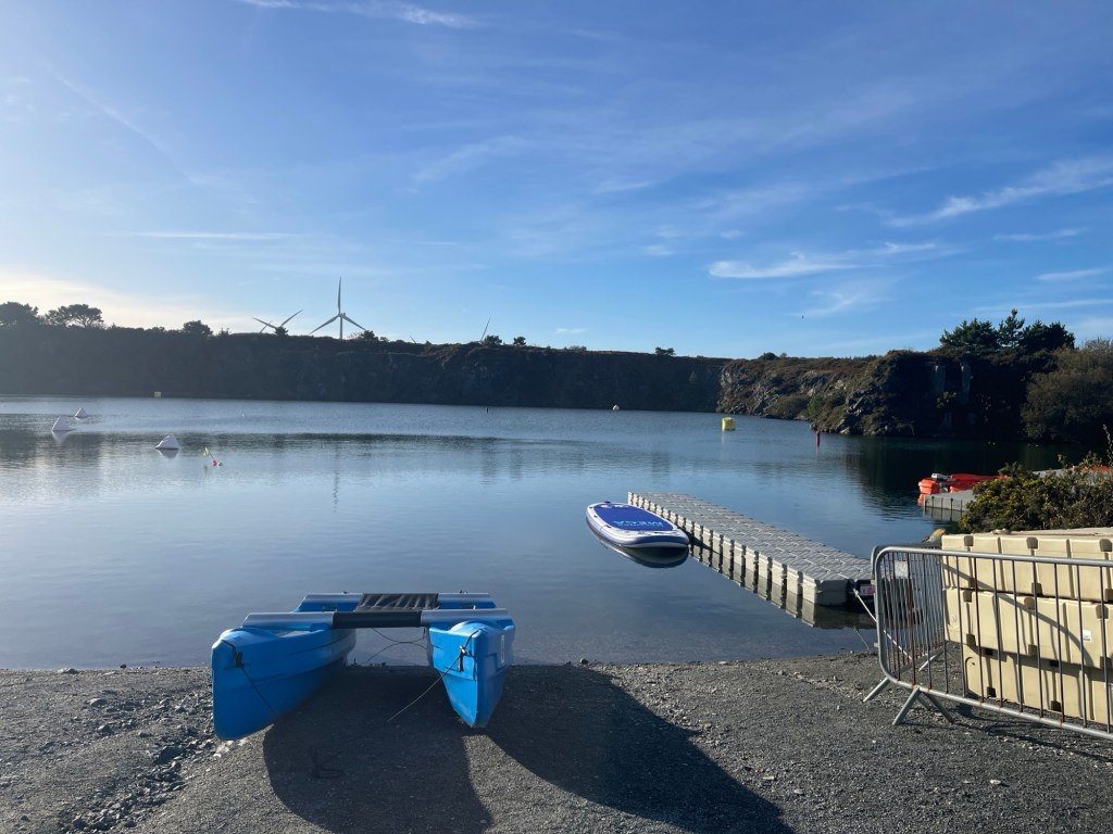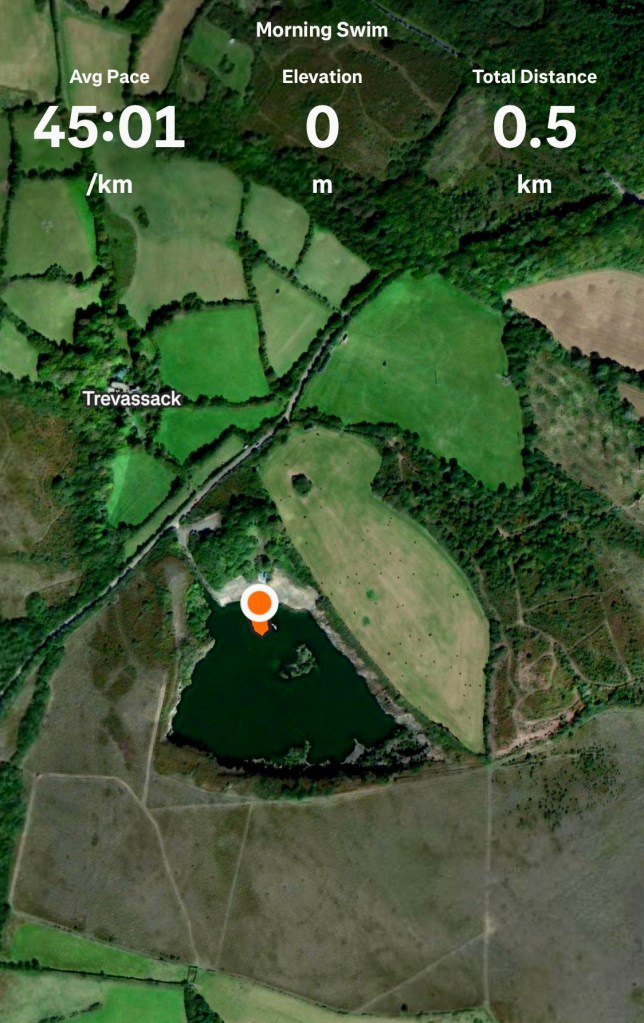 Morning open water swim in Trevassack Lake after a cold night. Afterwards had breakfast with Francesca.