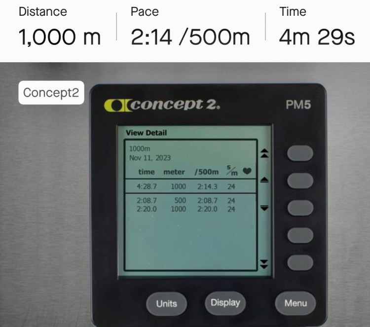Quick training bike ride on Zwift after sometime not training after some strength training. Followed this with a quick 1000m cool down row on the C2 RowErg shown below