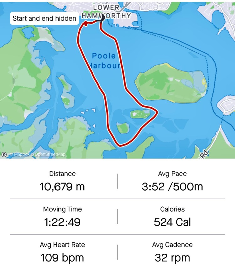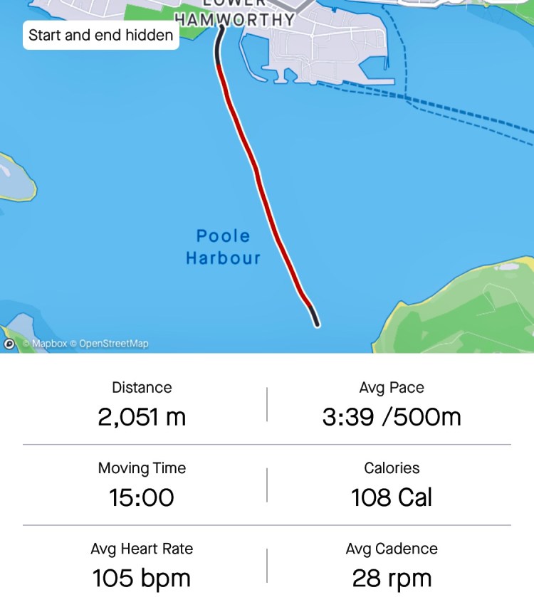 This was more of a Sprint race and again we beat 3 other boats with good stroke rate and again pleased with this. My Strava is below that just before we actually started racing. The row out was 2.5 km and slower but gave us time to home in on our technique