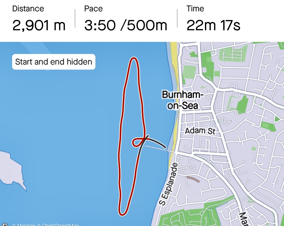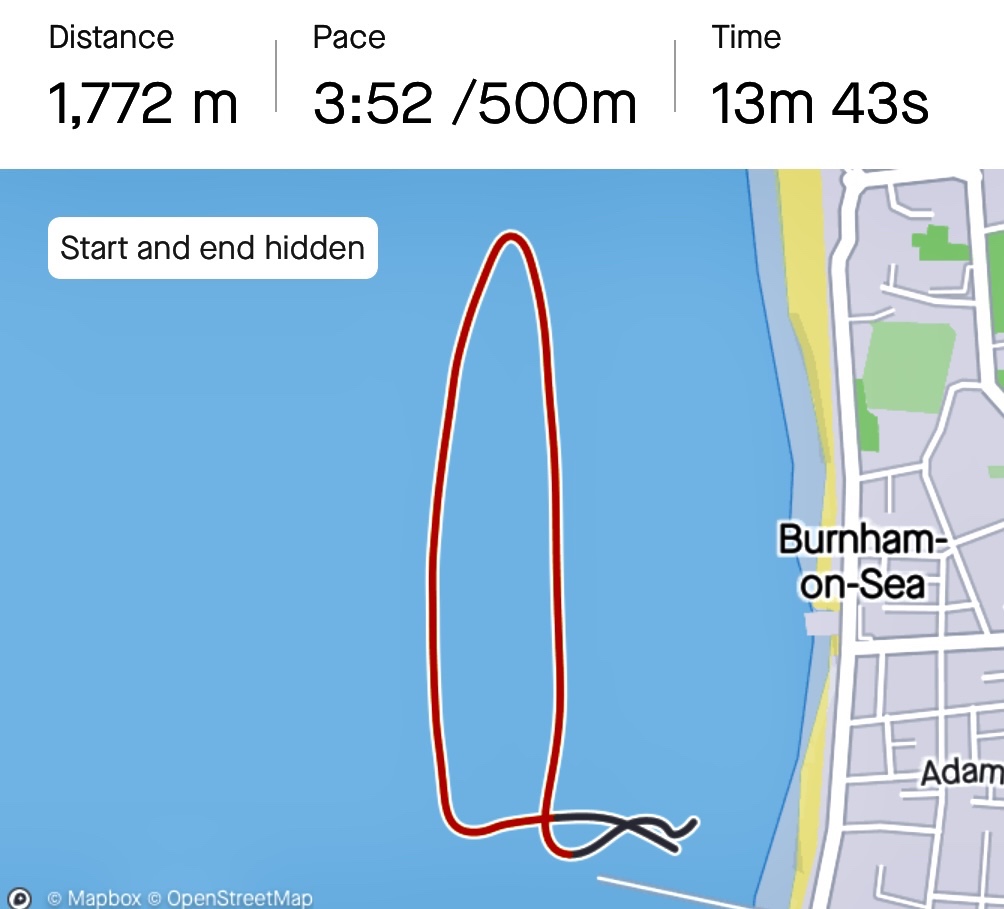 In the next race, the women’s A we came 3. This was followed by the mixed supervets where we came 5. We did not have a team for the novices or juniors. In the last race Steve, Tina and myself competed and we won this one and is summarised below and was shortened as the tide was coming in fast.