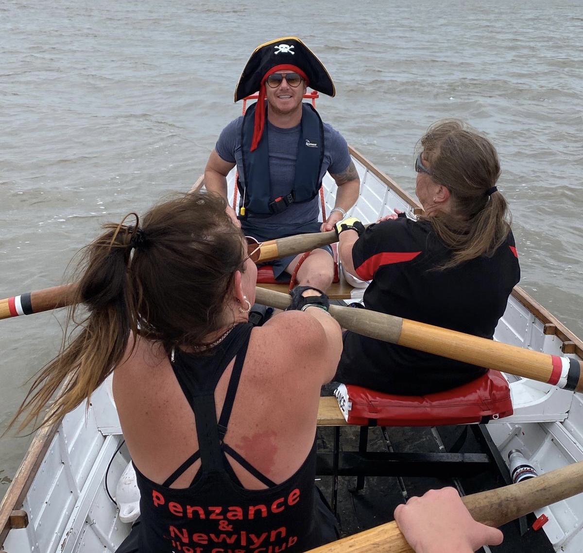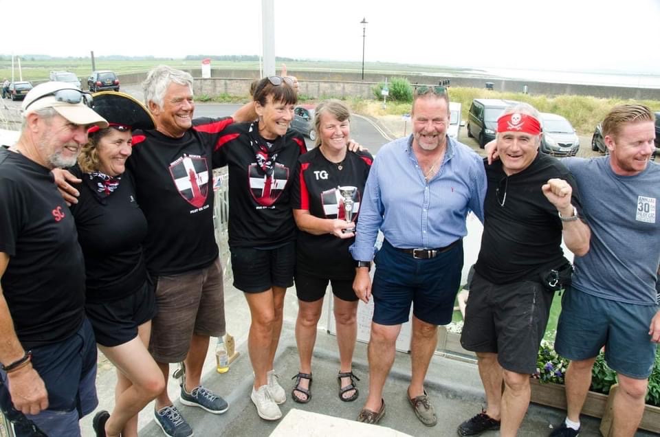 Early 4 am start on trip down to Burnham on sea Regatta. Met Steve and Jemima in Tesco car park for drive down to Burnham in Steve’s camper van ๐. Took just under 4 hours and we met the rest of the pirate crew at Burnham on sea sailing club. Afterwards went to the local Witherspoons for a refueling breakfast ๐ณ before checking into the Royal Clarence Hotel on the sea front to change for the days event. We met the rest of the crew which consisted of PNPGC supplemented by our friends from Brightlingsea and Rowhedge gig clubs who also dressed up in our kit with a few pirate ๐ดโโ ๏ธ additions. See the motley crew below ๐