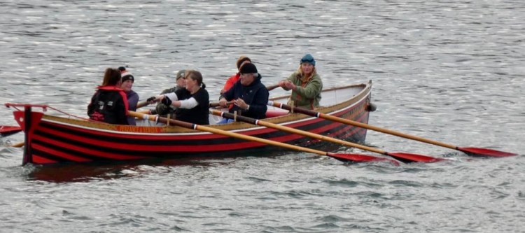 Long technical gig row out of Penzance harbour practicing race starts and lengthening stroke. Cox: Julie, 6: Tina, 5:Emma, 4: Me, 3: Steve, 2: Jemima, 1: Chris. Steve and myself changed to 5 and 6 respectively to work on a longer stroke. Quite Choppy and cold