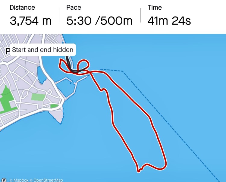 Second day of doing a 5km workout on the Concept2 Ergrow as all rows are off due to dreadful weather. Shame as the Falmouth regatta at Mylor was cancelled 😪